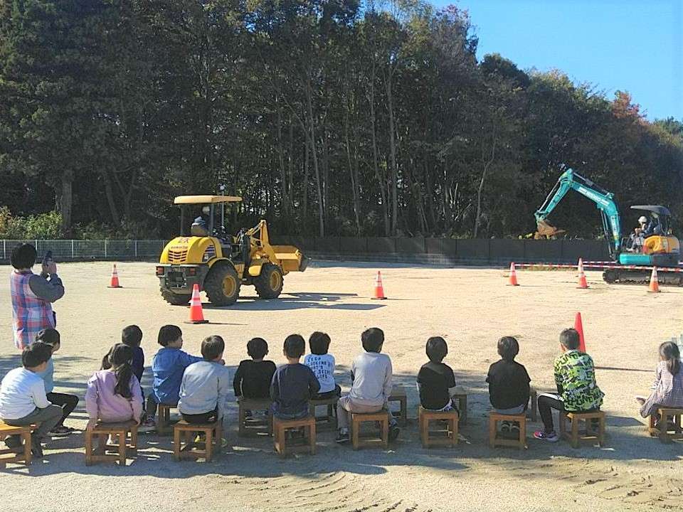 清原保育園の子どもたちが、ショベルカーやホイールローダーに乗り重機の操作を体験しました。